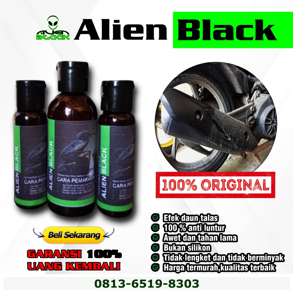 ALIEN BLACK diformulasikan untuk menjadi penghitam body motor dan mobil dengan hasil HITAM natural dengan efek daun talas.